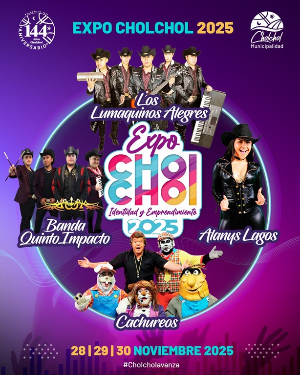 La programación de la Expo Cholchol 2025 combinará espectáculos de renombre nacional con actividades típicas de la zona, juegos infantiles y presentaciones locales.